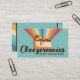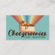 Cheesecake with caramels, pecans, and groovy mid-century retro vibe on this business card for a bakery or home baking biz for weddings, birthdays and other events, personalized with your choice of color scheme and fonts.