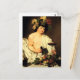 Caravaggio Bacchus postcard. Oil painting on canvas from 1595. Bacchus is one of Italian artist Caravaggio’s most famous paintings. The work features a young man dressed as the classical god Bacchus with leaves and grapes in his hair and a bowl of fruit sitting before him. The painting famously contains a wine carafe in which the image of the painter at his easel can be seen. The wine glass the young man holds likewise contains his reflection. A great gift for fans of Caravaggio, Baroque art, Mythology paintings, and wine.