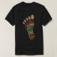 My 11 yo wore adult XL (5’7” 165#). The 8yo is small framed. She wore adult small and tied it in the back. Grandma wore adult large with long sleeve shirt underneath. Tall girl adult medium. Dark haired male adult large. Good quality dark Heather gray, Gildan brand shirt. -it was next up from basic choice and cost about $20 per shirt. Not too thick or thin. Washed and dried well, no major shrinkage. Not see-through. Can wear a bra under it fine. Screen print is just as shown and well done, front and back.