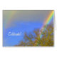 Bright rainbow on right has a pale copy on the left. Sunlight enhances the tree limbs at bottom of image. Cover text "Celebrate" and interior text "Enjoy Your Day!" may be customized. Interior has faint rainbow arch and clouds in blue sky as a background.