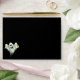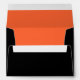 Card envelope shown in halloween colors black and orange with a ghost print.