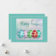 Beautiful flat Happy Easter card with colorful Easter eggs with a teal background! A great way to celebrate the Easter holiday.