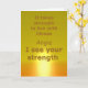 Buy a greetings card for an ill friend. Does your friend live with chronic illness? Is a get well card unsuitable because they live with severe, long term or even terminal illness? Do you want them to read words of encouragement? Let this powerful friendship card communicate your admiration. Alternatively, buy as a card for a sick sibling, parent or child. The words on the front of the card are “It takes strength to live with illness. I see your strength”. The message inside this get well card reads "with my admiration". Alternatively you can customize the card. For example, you might change the message inside to make it a Happy Birthday card for an ill friend. It is equally suitable for a friend living with physical or mental illness. If you wish to send the card direct, add the name of the recipient and your own name. Alternatively delete these options and stock up on blank cards. I live with Myalgic Encephalomyelitis ME/CFS. It's easy to equate physical weakness with general weakness and I find this card so encouraging. The image has a suggestion of gold and light and the card is available in a smaller size and a different paper quality. If you want it in a bigger size, please get in touch.