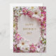 A beautiful Mother's Day card featuring a bouquet of pink and white flowers on a white background. The text on the front of the card reads "HAPPY MOTHER'S DAY" in a pink font.