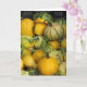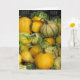 Fall harvest of many types of squash, or gourds. Striped, round, orange, green, yellow, etc. Inside greeting reads "Happy Thanks Giving"