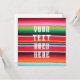 Spice up your celebration with this bright and colorful Mexican serape blanket–inspired card or invitation. Featuring vivid stripes in traditional poncho style, this design is perfect for customizing with your own text—great for Cinco de Mayo parties, Día de los Muertos (Day of the Dead), or any festive gathering. Add names, dates, or event details to create a fun, personalized invite that brings bold culture and color to your occasion. Ideal for birthdays, fiestas, and heritage-themed events. Easily editable on Zazzle!