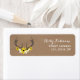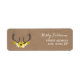An address label featuring an illustration of a pair of deer antlers decorated with daisies and black eyed susans. Background is brown paper cardboard inspired. Personalize the text with your name and address.
