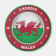 A 3D depiction of the Welsh national flag, sits in the middle of the design The capital city, Cardiff, is at the top of the image, and the country, Wales, is at the bottom of the image. In between the two pieces of text are decorative stars and two fleur-de-lis.