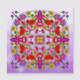 Red, purple, yellow and green flowers, cardinals mandala art.