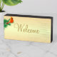 Beautiful cardinal on pine branch Welcome Wooden Box Sign. Text can be personalized.