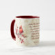 Red cardinal decorative mug with quote from the Bible - Matthew 6:26 "Look at the birds of the air: They do not sow or reap or gather into barns -- and yet your heavenly Father feeds them. Are you not much more valuable than they?" Off white damask background. Your choice of many different sizes, colors and styles of mug. There is a matching calendar towel. Thanks for looking.
