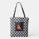 Cardinal bird with wild berries on black and white checkered pattern Tote Bag. Beautiful and modern Tote Bags!