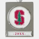 Cardinal Block "S" with Tree Silver Plated Banner Ornament