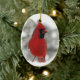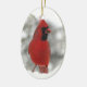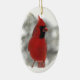 This holiday ornament features a brilliant red cardinal. He is truly the king of backyard birds! Here he is perched on a snowy rail eating black oil sunflower seeds while the winter snow swirls around him. Won't he be lovely hanging from your Christmas tree?