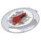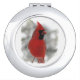 This compact mirror features a brilliant crimson red cardinal. He is truly the king of backyard birds! Here he is perched on a snowy rail eating black oil sunflower seeds while the winter snow swirls around him.