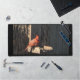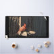 A desk mat featuring a photo of a Cardinal.