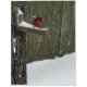 A dry erase board featuring a photo of a Cardinal in the snow.