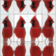 An abstract pattern of brilliant crimson red cardinals adorn this lovely fabric design. The Northern cardinal is truly a beautiful bird.