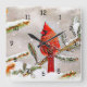 Cardinal in a pine tree in winter square wall clock
