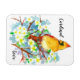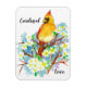 A "Cardinal Love" magnet decorated with a female cardinal bird in a blooming dogwood tree illustrated with ink and watercolor. Inspired by the state bird and state flower of Virginia. You can add text to fit your needs.