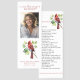 Cardinal Memorial Funeral Keepsake Bookmark. Honor the memory of your loved one with this beautiful memorial bookmark featuring a serene red cardinal design. Personalize with a cherished photo and custom text to create a touching tribute. Ideal for funerals or memorial services, this bookmark serves as a heartfelt keepsake for friends and family to treasure.