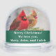 Beautiful northern cardinals sit in a pine tree on a snowy winter background on this custom snow globe that you can personalize with a family name or a seasonal phrase. On the back, leave a short message or wish as well. Makes a lovely and personal Christmas gift for just about anyone on your list this holiday season.