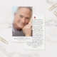 This memorial poem card can be given as a keepsake at a Celebration of Life or funeral service or sent as a special tribute to those who were unable to attend. This card can be personalized with a favorite photo and your choice of prayer or poem. The photograph is for illustrative purposes and can be changed to one of your own.