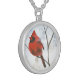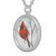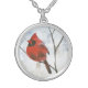 A tiny watercolor wildlife painting of a brilliant, male Cardinal bird with his feathers puffed up to keep warm on a cold winter day.