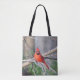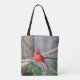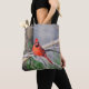 Bold red Northern Cardinal presents a lovely portrait on useful tote bag. Ideal gift idea, for those who love these cheery birds !