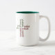 .Coffee mug with a quotation from Bernard of Clairvaux' Five Books on Consideration: "Justice seeks but prudence finds; fortitude wins but temperance keeps." Lettering is muted green and red; mug interior is green. 5% royalty benefits the Trappists of North America.