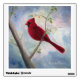 From an original mixed media painting by Brenda Thour of a red male cardinal sitting on a bare tree branch with an abstract blue and pink sky. Copyright by Brenda Thour 2005.