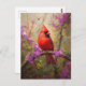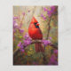 A striking red cardinal sits gracefully among delicate purple flowers, creating a beautiful contrast of bold and soft hues. This nature-inspired artwork captures the elegance of wildlife with a harmonious blend of vibrant colors and botanical charm.