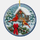Cardinals and Christmas Bird Feeder Ceramic Ornament