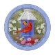 Cardinals and Round Birdhouse Blue Cutting Board