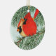 cardinals and snowman ceramic ornament