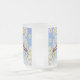 Original fine art design of male and female Cardinals in an apple tree by illustrator/designer Carolyn McFann of Two Purring Cats Studio on a quality frosted glass coffee mug for bird lovers.