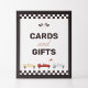 Let your party guests know where to leave cards and gifts (or customize the text) with this race car themed sign, designed to match our Racecar Party Collection.
