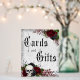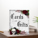Cards & Gifts table sign with skull and red and black roses, for gothic wedding or Halloween party. Pre-made text with fancy gothic font. Look for other matching items in the collection "Gothic Wedding Skulls and Roses G19"