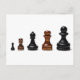 A line of five chess pawns of different sizes from the smallest to the left to the largest to the right as a symbol of business career growth. Isolated against the white background.