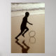 The silhouette of a fisherman's son, playing in the surf with that age old classic toy, the hoop and stick.