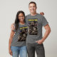 My 11 yo wore adult XL (5’7” 165#). The 8yo is small framed. She wore adult small and tied it in the back. Grandma wore adult large with long sleeve shirt underneath. Tall girl adult medium. Dark haired male adult large. Good quality dark Heather gray, Gildan brand shirt. -it was next up from basic choice and cost about $20 per shirt. Not too thick or thin. Washed and dried well, no major shrinkage. Not see-through. Can wear a bra under it fine. Screen print is just as shown and well done, front and back.