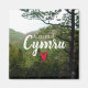 This beautiful souvenir British forest magnet shows a picturesque landscape view of Wales near Devil's Bridge in mid-Wales, with the typography 'cariad Cymru,' meaning 'love Wales.'