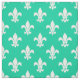 Caribbean Green, White Fleur De Lis Pattern Fabric