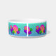Brighten the day with these vibrantly colored pink, yellow, blue, purple, green and orange scalloped seashells with floating bubbles on this pet bowl.