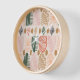 Caribbean Tribal Mudcloth: Boho Dark Green, Pink Clock