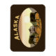 Two caribou bulls wrestle during the fall rut in the far north while the sun sets in the background. Text reading "Alaska" also appears.