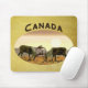 Two caribou bulls wrestle during the fall rut in the far north while the sun sets in the distance. Text reading "Canada" also appears. The image is superimposed on a braintan leather background.