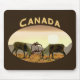 Two caribou bulls wrestle during the fall rut in the far north while the sun sets in the background. Text reading "Canada" also appears.