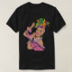My 11 yo wore adult XL (5’7” 165#). The 8yo is small framed. She wore adult small and tied it in the back. Grandma wore adult large with long sleeve shirt underneath. Tall girl adult medium. Dark haired male adult large. Good quality dark Heather gray, Gildan brand shirt. -it was next up from basic choice and cost about $20 per shirt. Not too thick or thin. Washed and dried well, no major shrinkage. Not see-through. Can wear a bra under it fine. Screen print is just as shown and well done, front and back.
