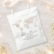 This baby shower favor bag features a beige watercolor world map, heart airplane trail and elegant script font. This invitation is perfect for your gender neutral travel or adventure themed baby shower. Easily edit *most* wording to meet the needs of your event.